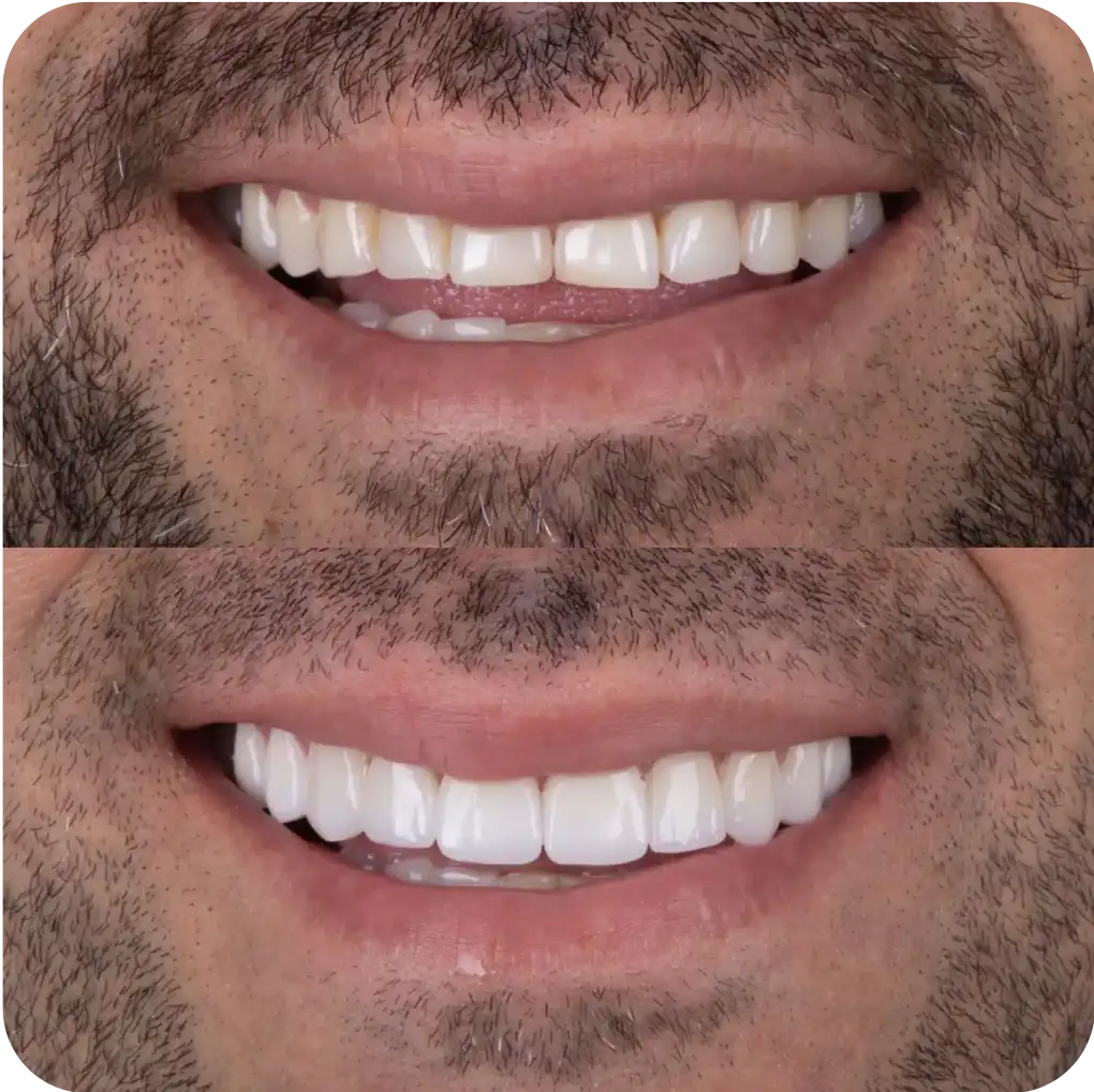 Lâminas ultrafinas de porcelana aplicadas sobre os dentes para corrigir imperfeições e proporcionar um sorriso harmonioso.