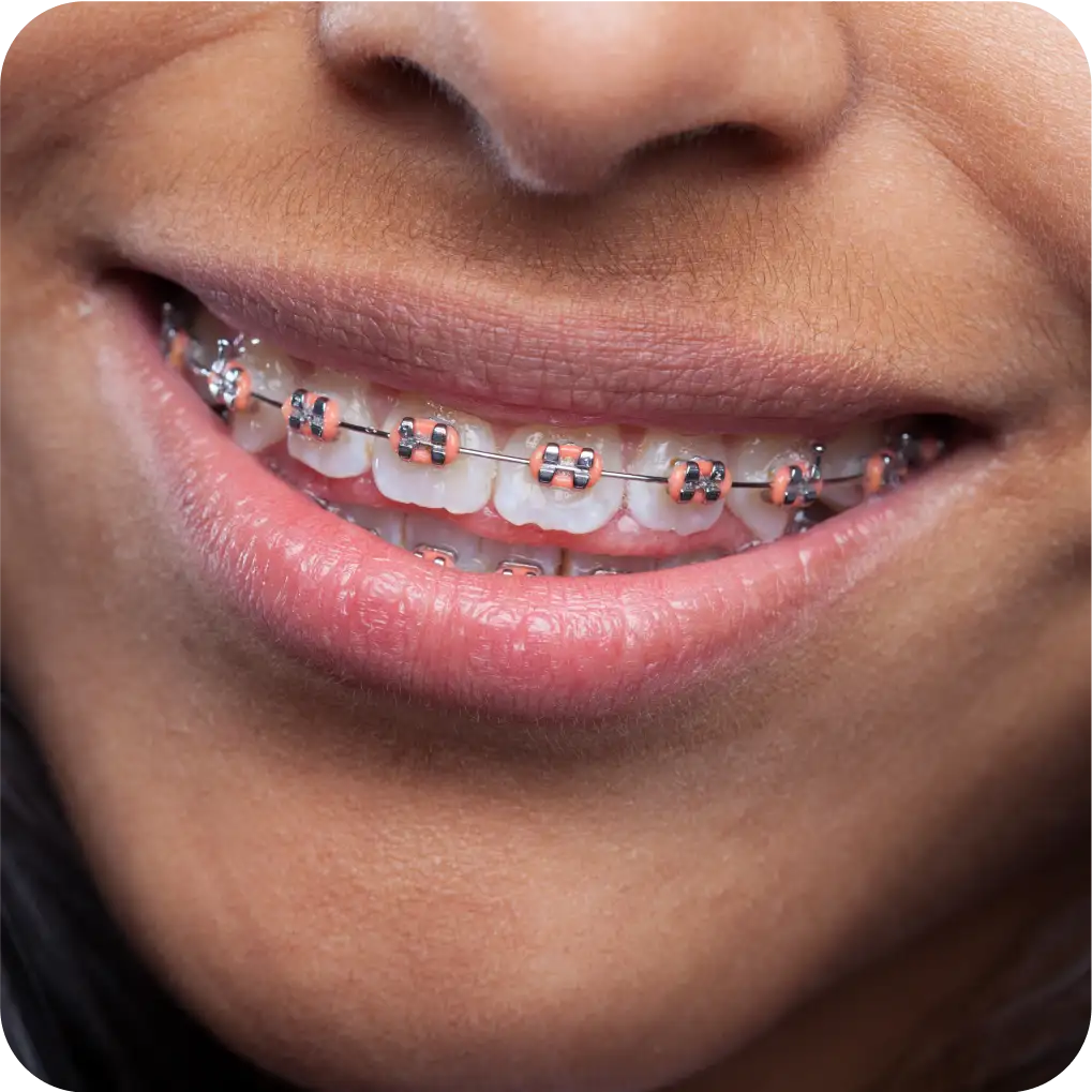 Correção de dentes desalinhados com aparelhos fixos ou alinhadores invisíveis, melhorando estética e função mastigatória.